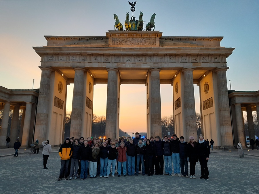 Die Klasse 9a hat erneut erfolgreich daran teilgenommen und dieses Mal sogar eine Platzierung bundesweit ergattert. Um ihren zweiten Platz in der Jahrgangsstufe 9 abzuholen, durften sie mit ihren Lehrerinnen Frau Unkelbach und Frau Lefevre nach Berlin fahren. In den knapp zwei Tagen haben die Schüler so viel wie möglich von Berlin erlebt. Der Donnerstag startete frühmorgens mit der Anreise mit dem ICE, dann Gruppenfoto vor dem Brandenburger Tor, Besuch des beeindruckenden Holocaust-Mahnmals, Shopping in der großen Einkaufsmeile, Besuch der Kuppel des Reichstags mit wunderschönem Blick auf Berlin bei Nacht und als einem Nachtspaziergang entlang der Eastside-Gallery, dem längsten, erhaltenen Teil der Mauer.