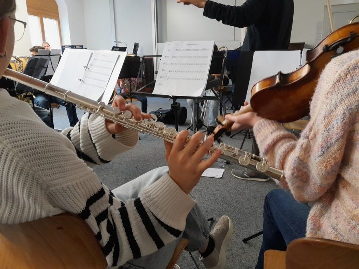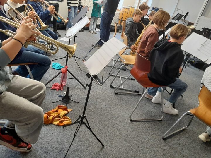 Bevor die Kinder zu Bett gingen, gab es zunächst einen inspirierenden Musikfilm („Die Kinder des Monsieur Mathieu”) und ein Versteckspiel im dunklen Schulhaus. Gegen Mitternacht war es fast überall ruhig. An dieser Stelle vielen herzlichen Dank an Katharina Lefèvre, die als weibliche Begleitperson einige heimwehkranke Fünftklässlerinnen auch mitten in der Nacht und am frühen Morgen mit Tee und Bettflasche sorgsam tröstete. Nach dem gemeinsamen Frühstück mit Brötchen sowie Kuchen- und Pizzaresten wurde noch zwei Stunden lang geprobt, vor allem ein gemeinsames Lied, das beim Weihnachtskonzert am 12. Dezember 2025 in der Stadtkirche vom Unterstufenchor und Unterstufenorchester aufgeführt wird.