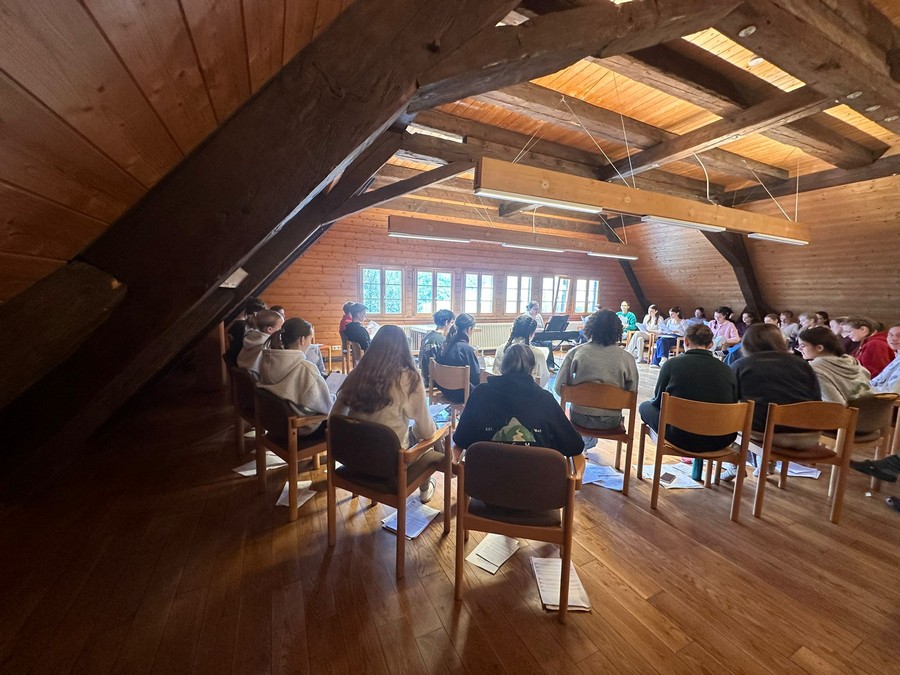 Vom 28. bis 30. Januar war der 40 köpfige Schulchor unter der Leitung von Frau Schuthof zu seinen alljährlichen Probetagen auf dem Wolfshof bei Obersimonswald. Nach der Anreise mit dem Bus und dem knapp 2km langen Aufstieg zum Wolfshof verbrachten wir eine tolle Zeit fernab von Schule, stabilem WLAN und der Zivilisation.