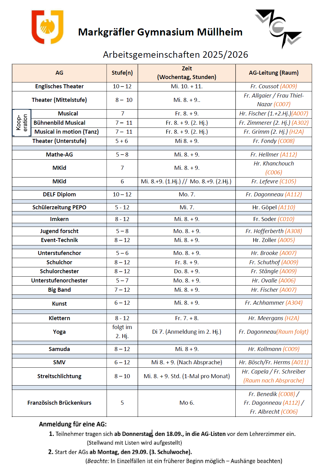 AGs starten ab 29.09.2025: Übersicht Arbeitsgemeinschaften